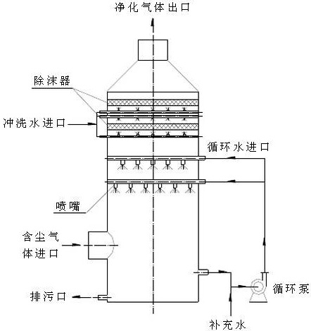 酸霧廢氣由風管引入凈化塔,經過填料層,廢氣與氫氧化鈉吸收液進行氣液兩相充分接觸吸收中和反應,酸霧廢氣經過凈化后,再經除霧板脫水除霧后由風機排入大氣。吸收液在塔底經水泵增壓后在塔頂噴淋而下,最后回流至塔底循環使用。凈化后的酸霧廢氣達到廣東省地方排放標準的排放要求,低于國家排放標準。