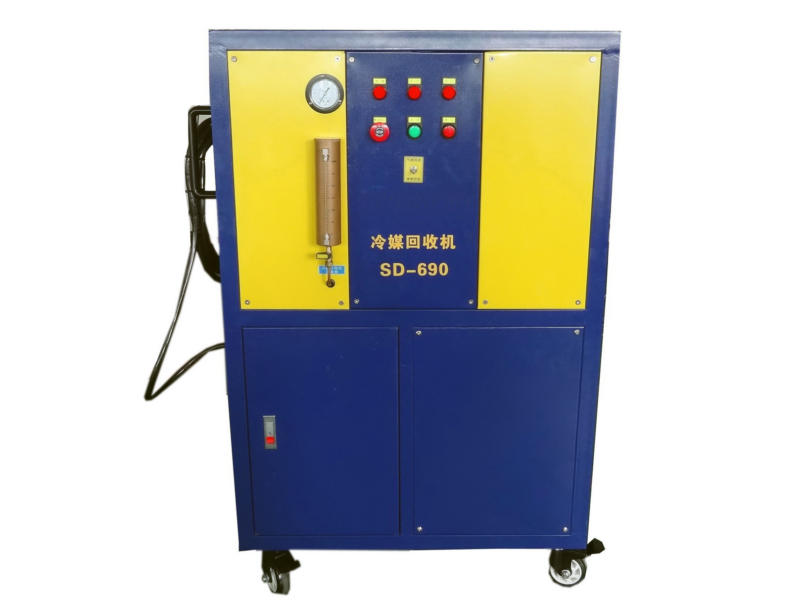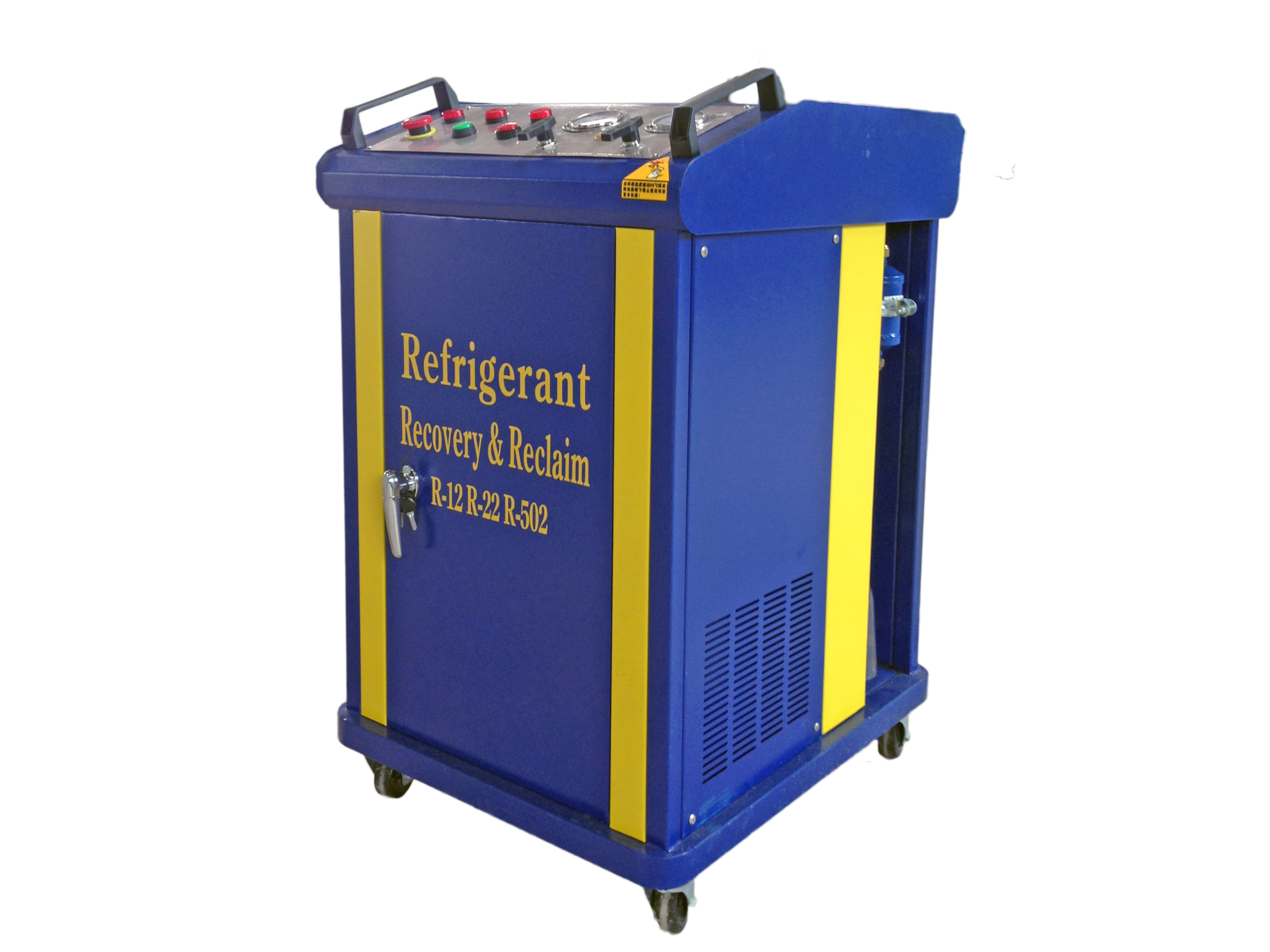 一種回收制冷劑的設備,用于回收制冷機械(冰箱、空調、冷柜等制冷機)中的制冷劑?;厥盏耐瑫r又對制冷劑進行一定的處理,如干燥、雜質的過濾、油分等,以便于制冷劑的二次利用。