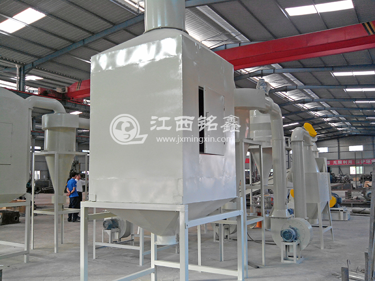 設(shè)備采取了干式破碎、粉碎,使廢舊電路板成為金屬和樹脂纖維末混合物,然后通過高壓靜電分離器將金屬與樹脂等非金屬分離的工藝路線。設(shè)備優(yōu)點,噪音小、無需水、無粉塵污染、節(jié)約動力,節(jié)約人力、絕無廢棄物,金屬及非金屬99%充分回收利用。為防止加工過程中的粉塵污染,設(shè)備采用三合一除塵裝置,除塵裝置共有三級除塵:旋風(fēng)除塵、布袋除塵和空氣凈化器除塵,有效地解決了粉塵污染問題,各項指標均達國家標準。